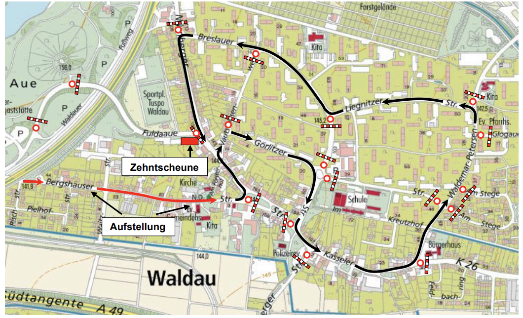 am Sonntag, 19. Oktober 2025 soll ab 14:00 Uhr der Festumzug zur 58. Waldauer Enten-Kirmes stattfinden. Die Wegführung für den Festzug ist wie im Vorjahr geplant. Auf Grund tragischer Ereignisse in den zurückliegenden Jahren an anderer Stelle werden jedoch die Sicherheitsauflagen für die Durchführung von Festzügen bei Volksfesten immer umfangreicher. Bereits in 2023 mussten wir zusätzliche Straßensperrungen im erheblichen Maße vornehmen, was für uns als Veranstalter mit einem immensen Aufwand verbunden war. Auch für dieses Jahr sind, weil wir überzeugt sind, dass dies hunderten Teilnehmerinnen und Teilnehmern, wie auch tausenden Zuschauerinnen und Zuschauern viel Freude bereitet. Für viele Waldauerinnen und Waldauer ist dies jedoch in der Zeit von ca. 13:30 Uhr bis ca. 16:00 Uhr am Sonntag, 19. Oktober 2025 mit Einschränkungen der individuellen Mobilität verbunden. Wir bedauern dies sehr; zur Durchführung des Festzuges sind diese Maßnahmen jedoch von behördlicher Seite der Stadt Kassel als erforderlich deklariert und für uns als zwingend postuliert!